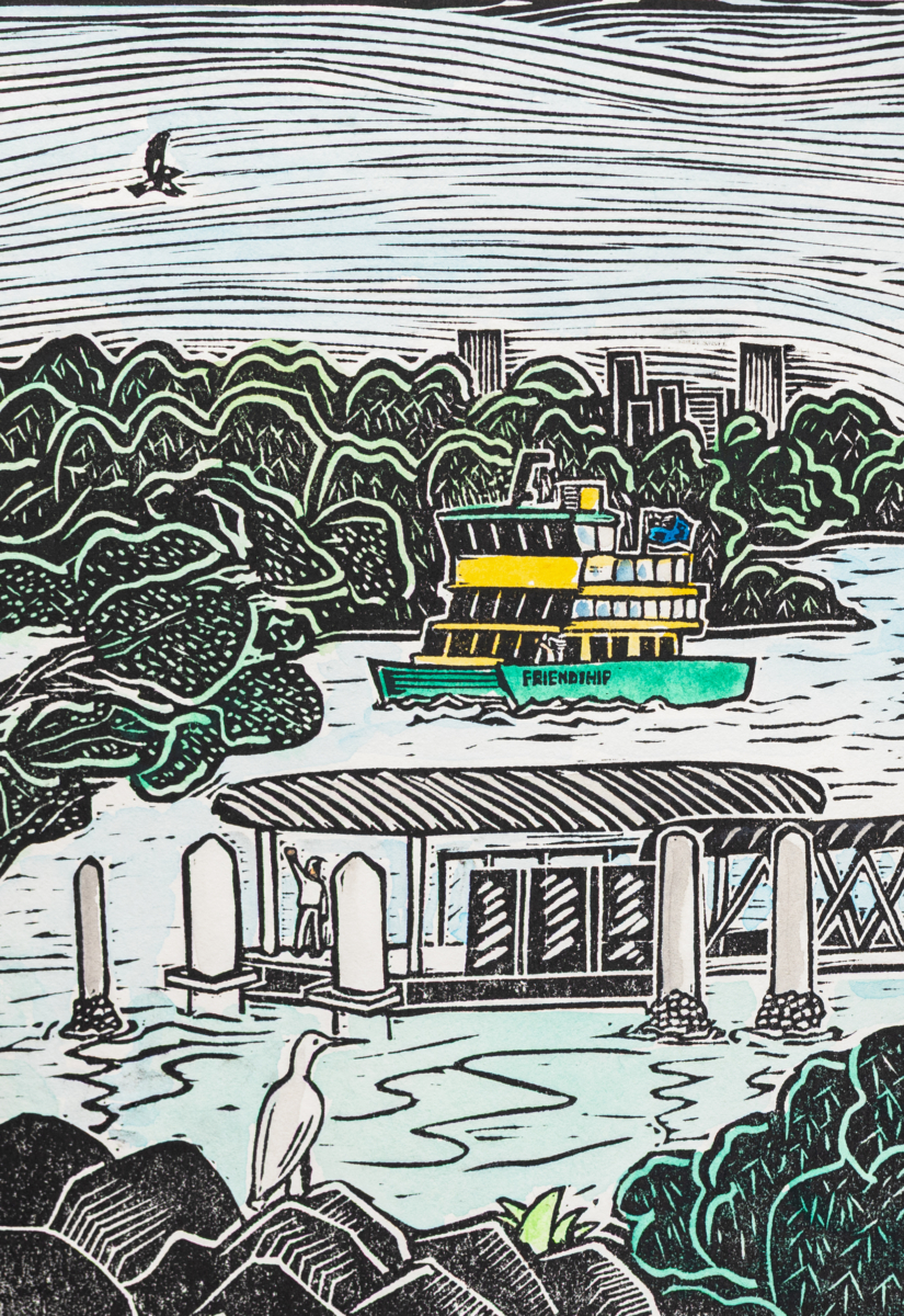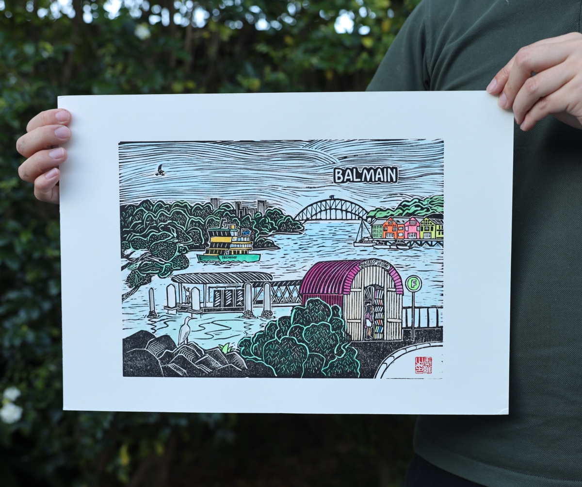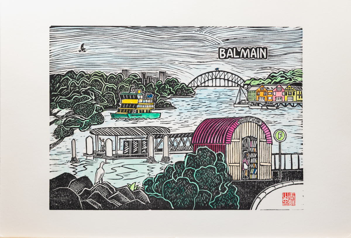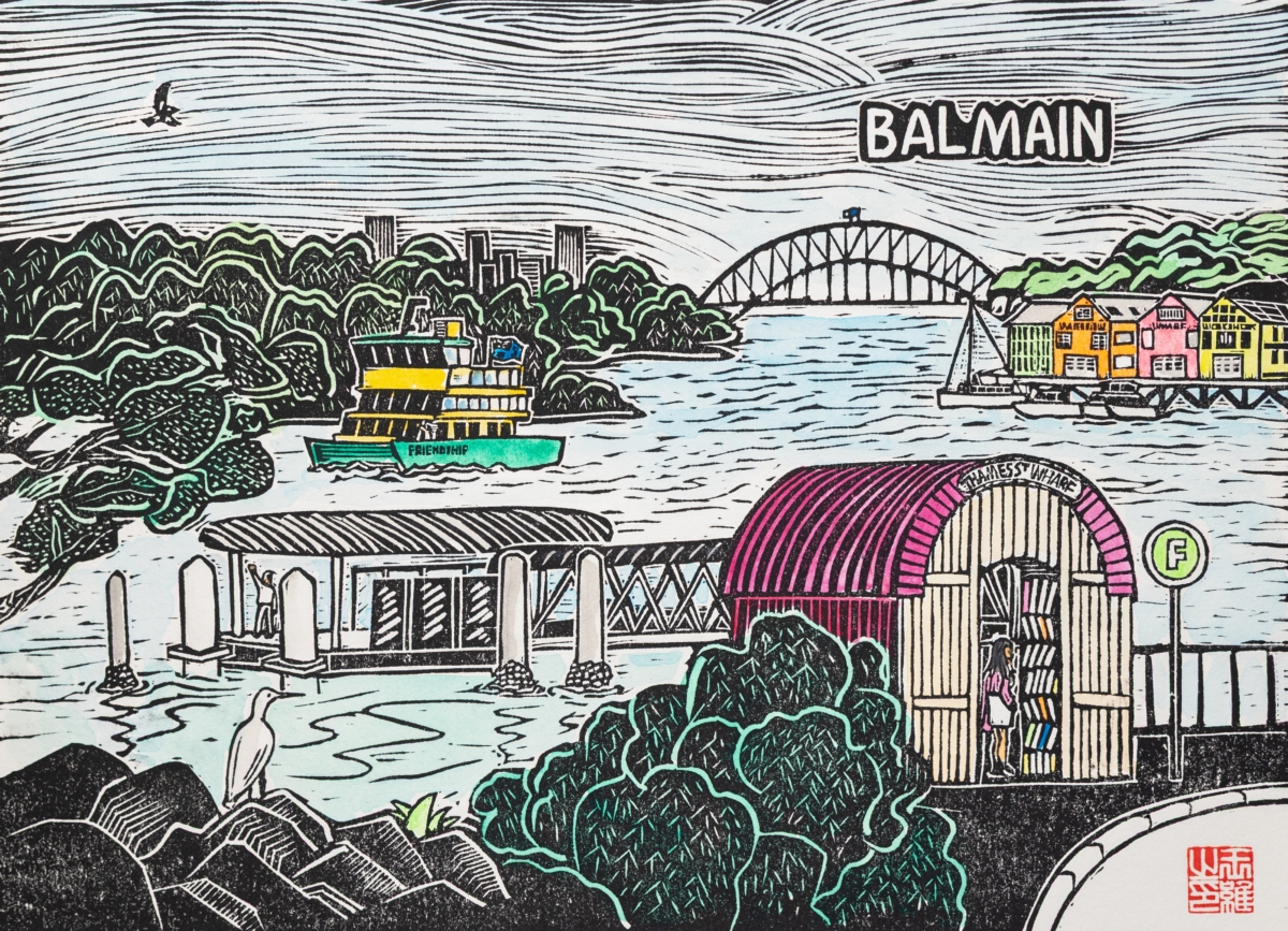 Balmain Wharf Linocut Print by Wang Wei